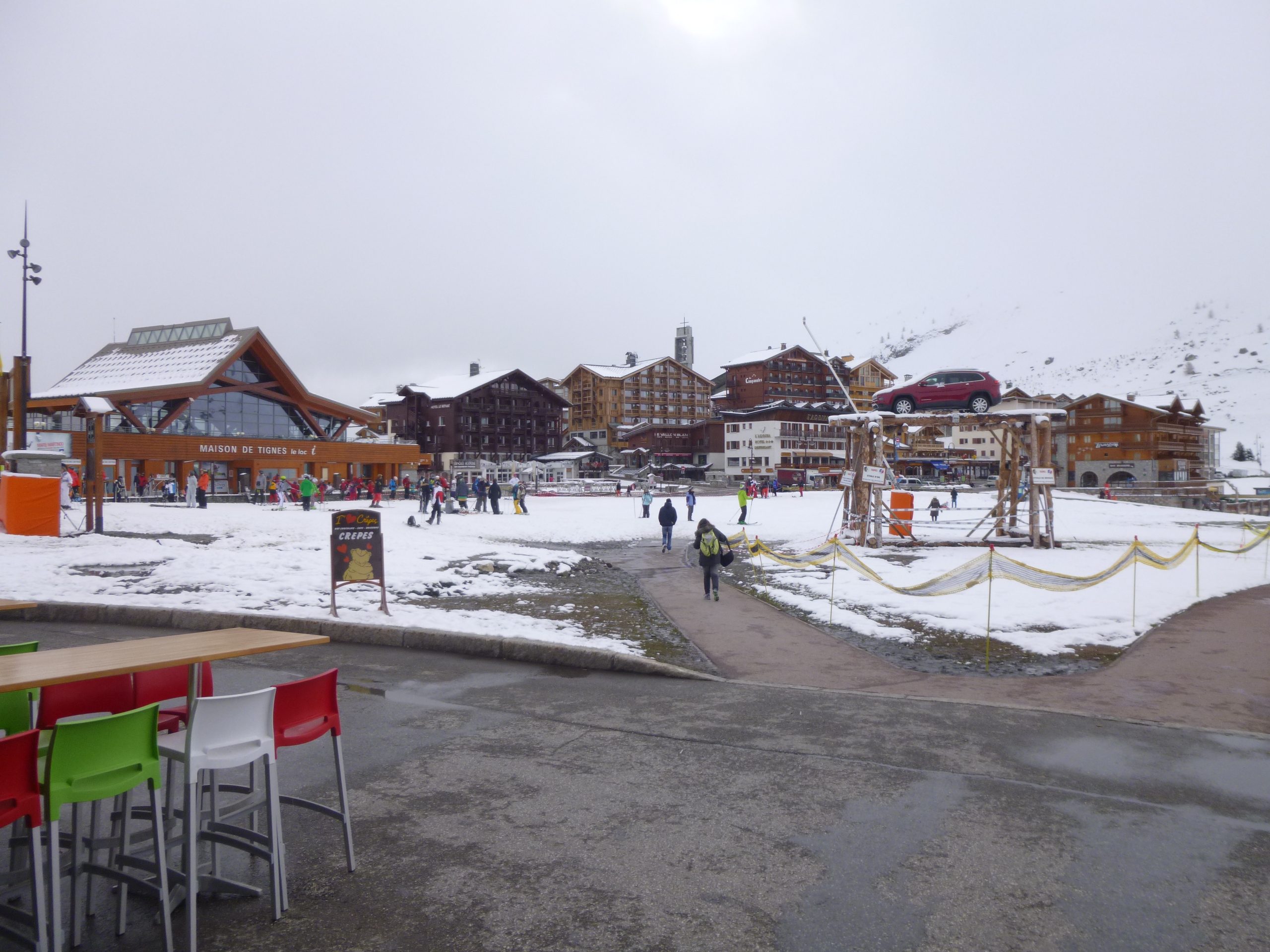 La place des drapeaux et la maison de Tignes